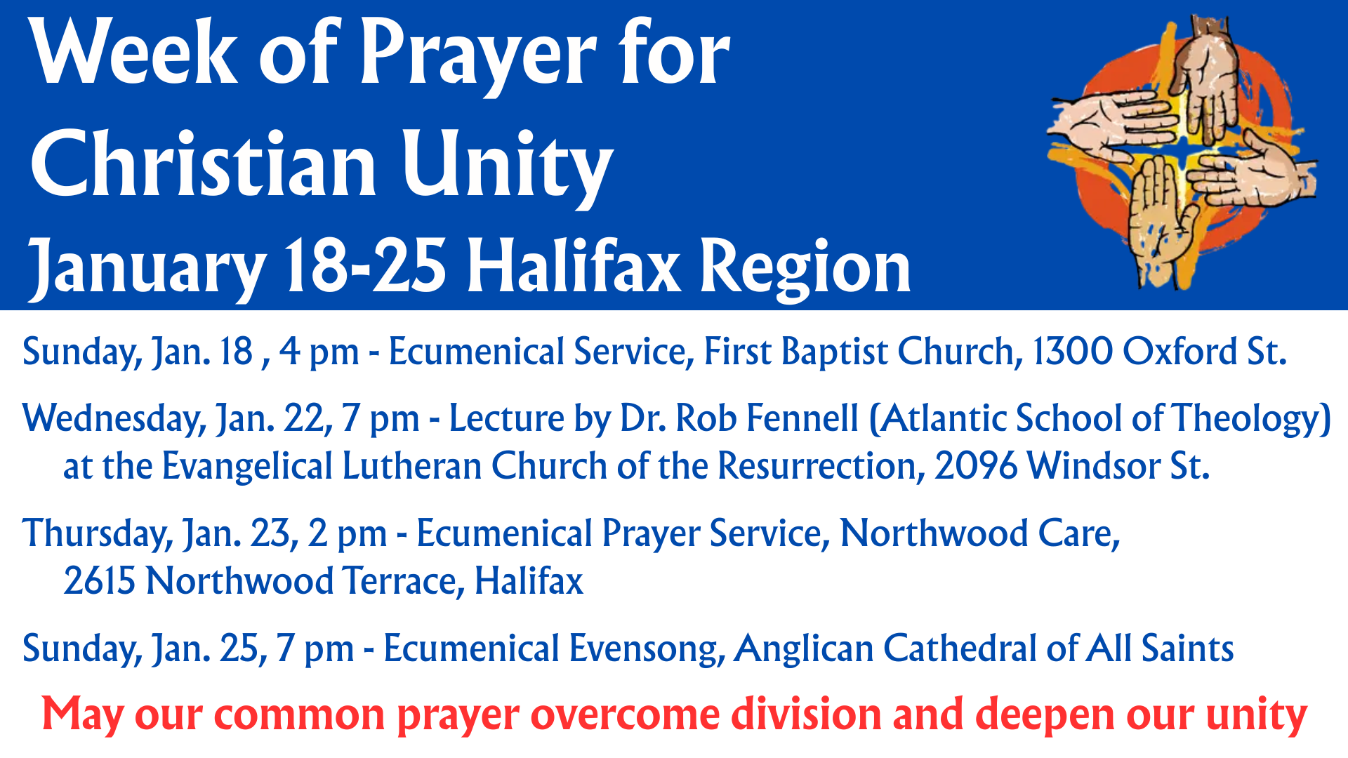 WEEK OF PRAYER FOR CHRISTIAN UNITY January 18-25 – the Cathedral is hosting the closing Evensong for this special week; it will be on January 25 at 7 pm, followed by a simple reception.